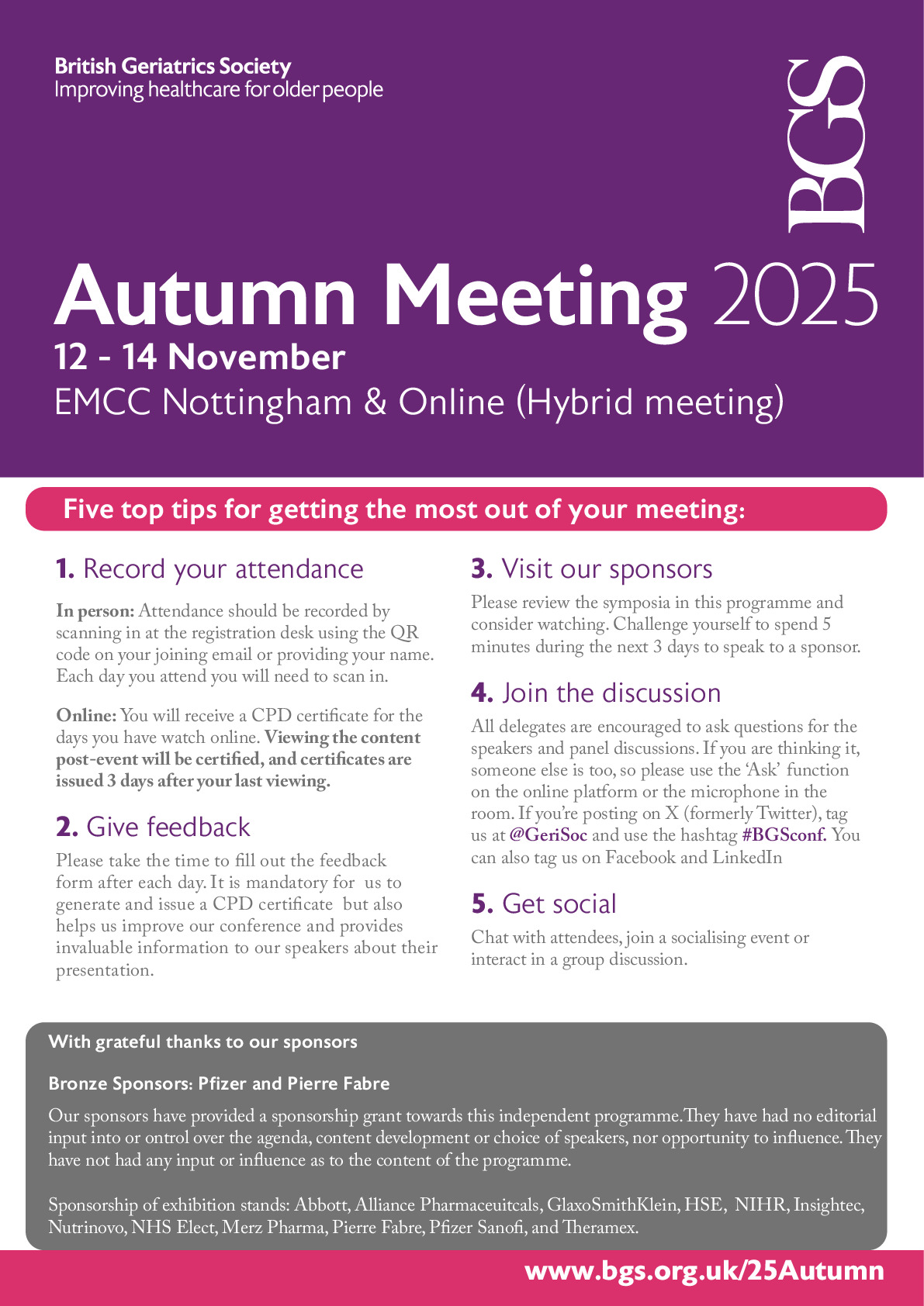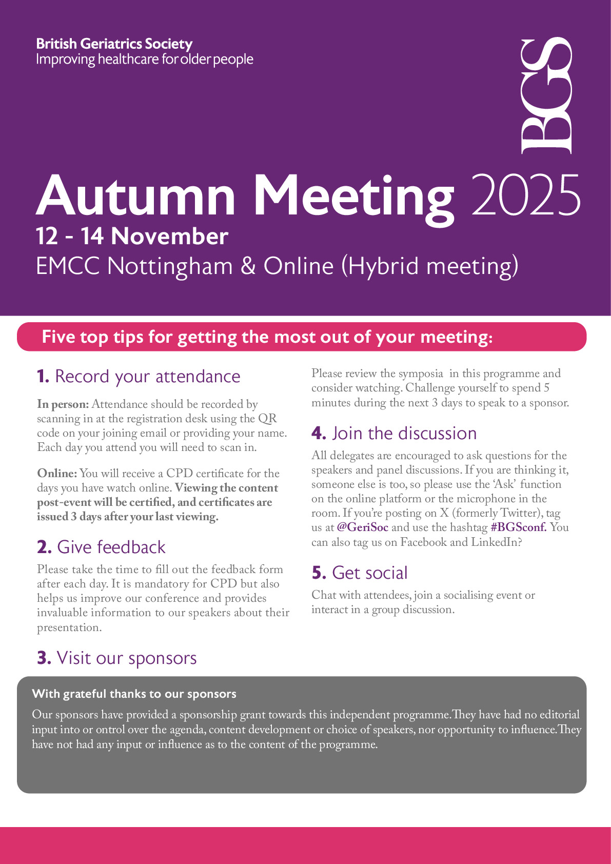 The BGS 2025 Autumn Meeting covered he latest scientific research and the best clinical practice in the care of older people. This conference is now available on demand until 15 May 2026.