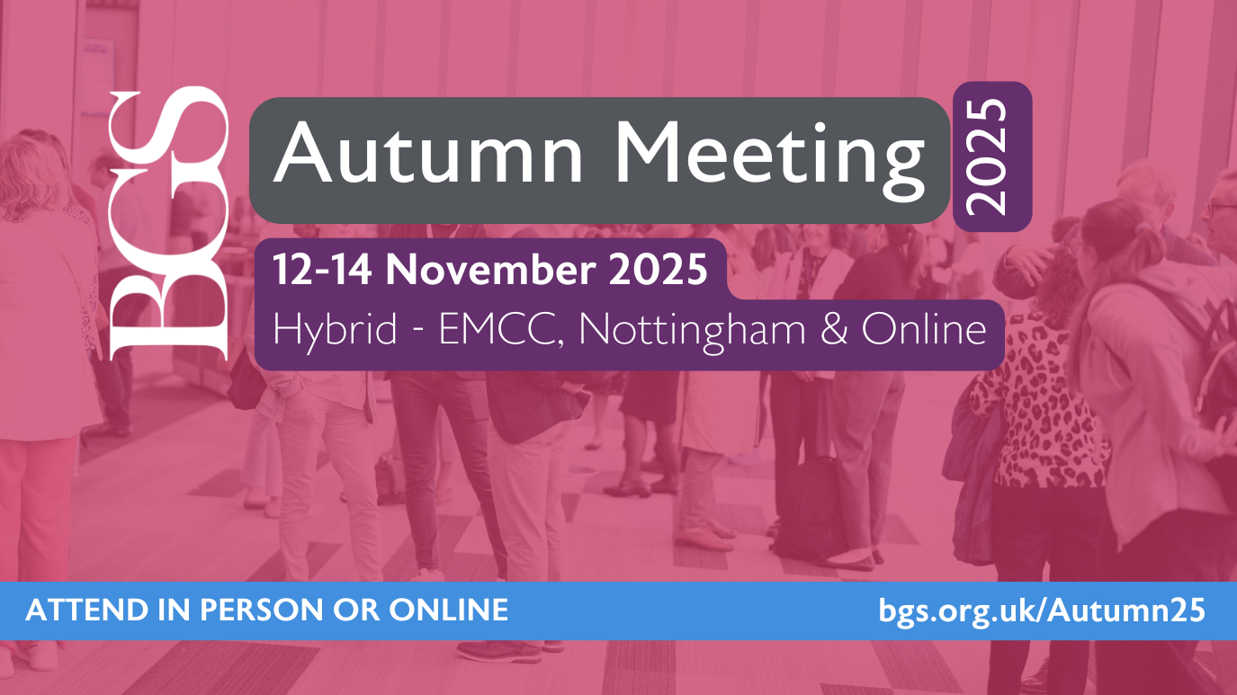 | Fully Funded Places: In Person or Online Members in Category B, C and D are now eligible to apply for a new BGS event grant. This will cover the registration cost for a BGS conference, either virtually or in person. Applications can be submitted from the event registration page, and should be requested and approved before completing registration. |