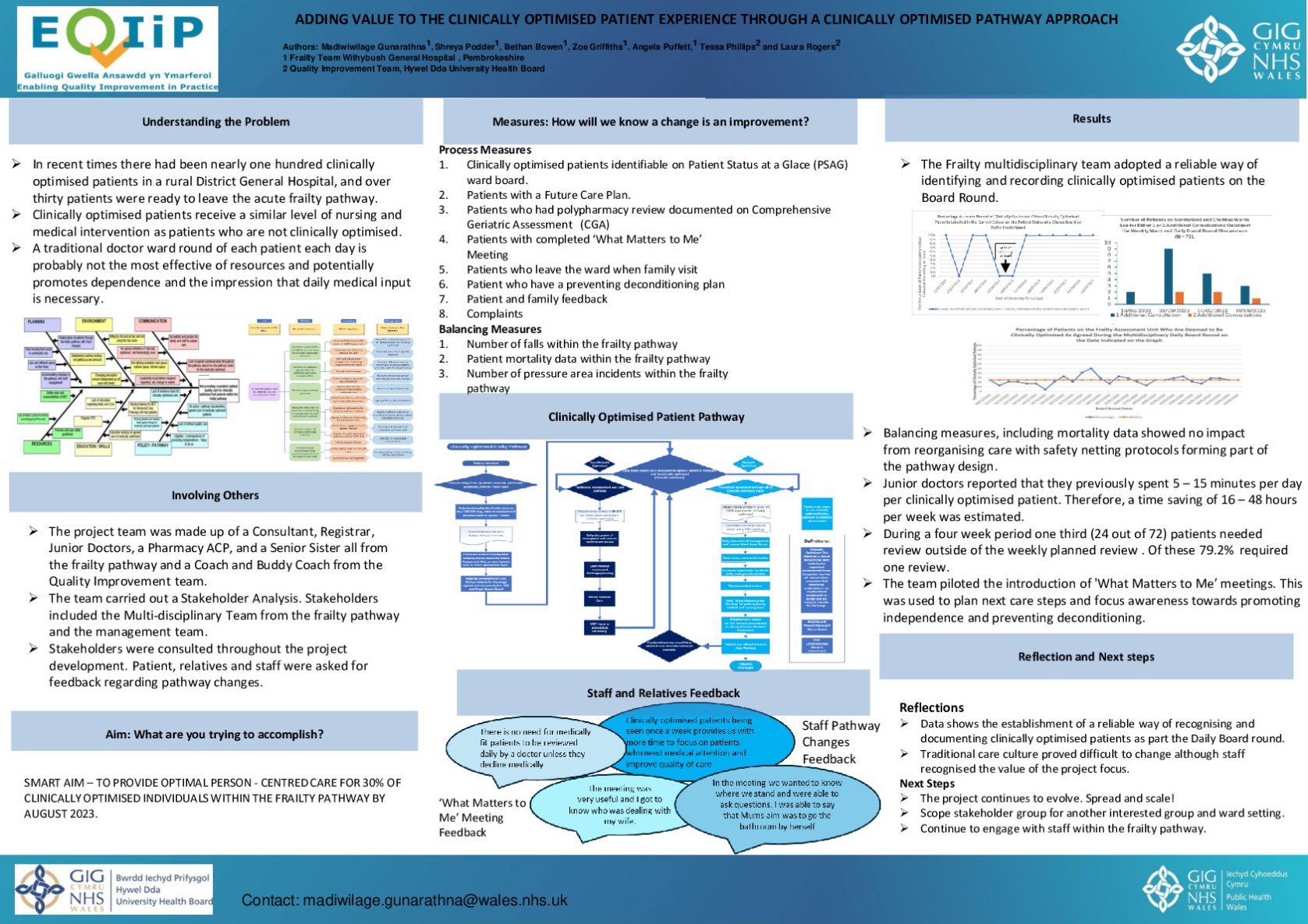 Method It was recognised that a daily medical ward round for clinically optimised patients was neither necessary or optimal and potentially perpetuated the impression that patients required in hospital care. National guidance supports delegation of daily review to other members of the Multidisciplinary Team. All clinically optimised were planned to be seen once a week on a medical ward round. All patients were discussed on the daily multidisciplinary board round and if needed were changed on the board to not clinically optimised which prompted review. Nurses could also ask for review outside of the board round.