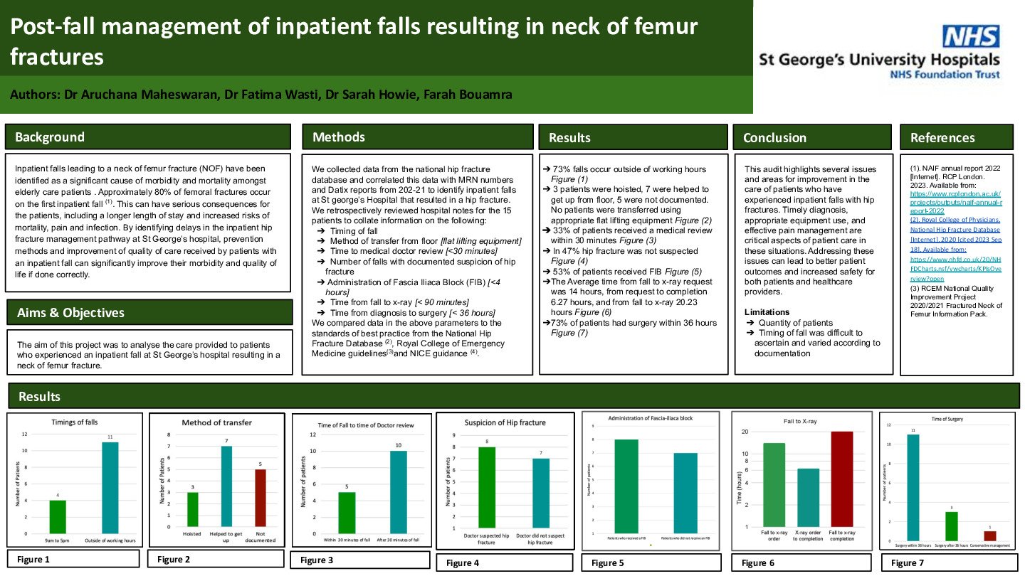 Title: An audit examining the post-fall management of inpatient falls resulting in neck of femur (NOF) fractures.