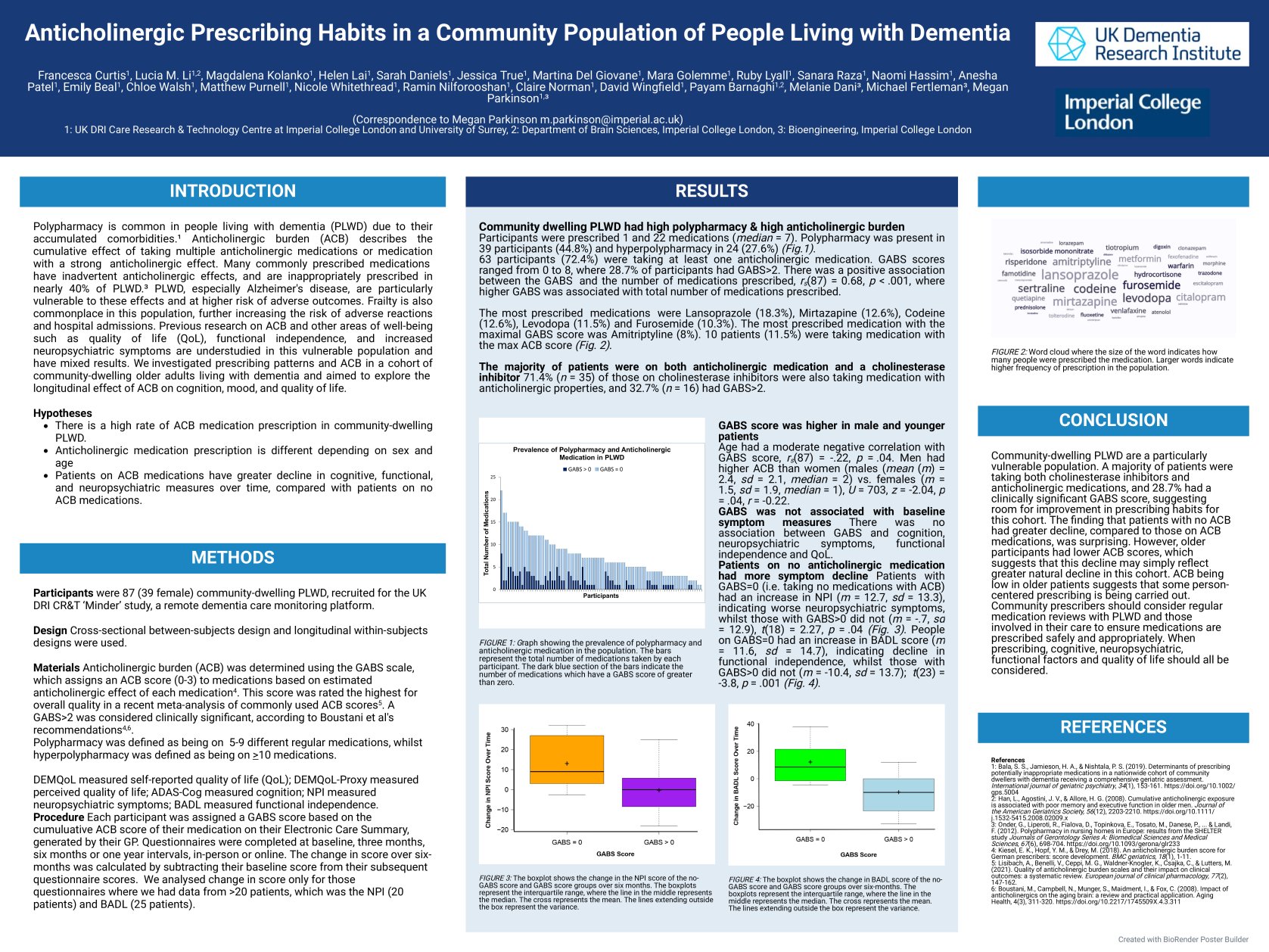 Many commonly prescribed medications have inadvertent anticholinergic effects. People living with Dementia (PLWD) are vulnerable to these effects and at risk of adverse outcomes, the risk being higher with greater anticholinergic exposure. We investigated prescribing patterns and anticholinergic burden (ACB) in a cohort of community-dwelling PLWD and explored the effect of ACB on cognition, neuropsychiatric symptoms, quality of life (QoL), and functional independence.