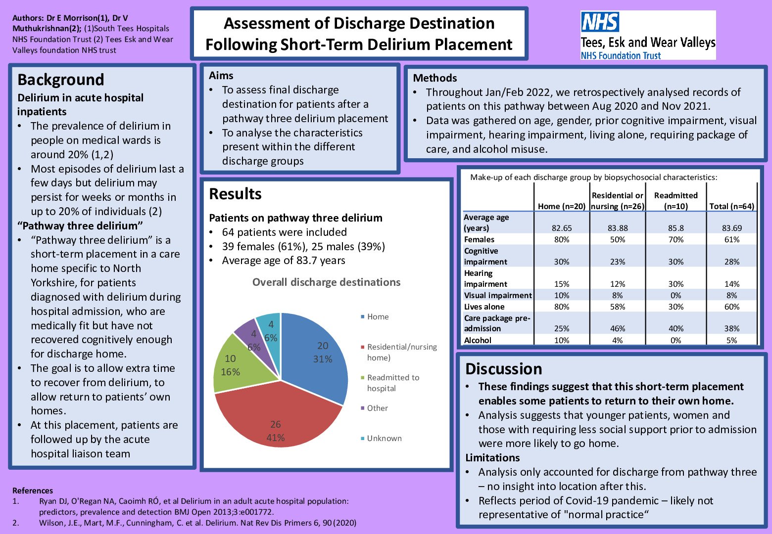 Assessment of Discharge Destination Following Short-Term Delirium Placement