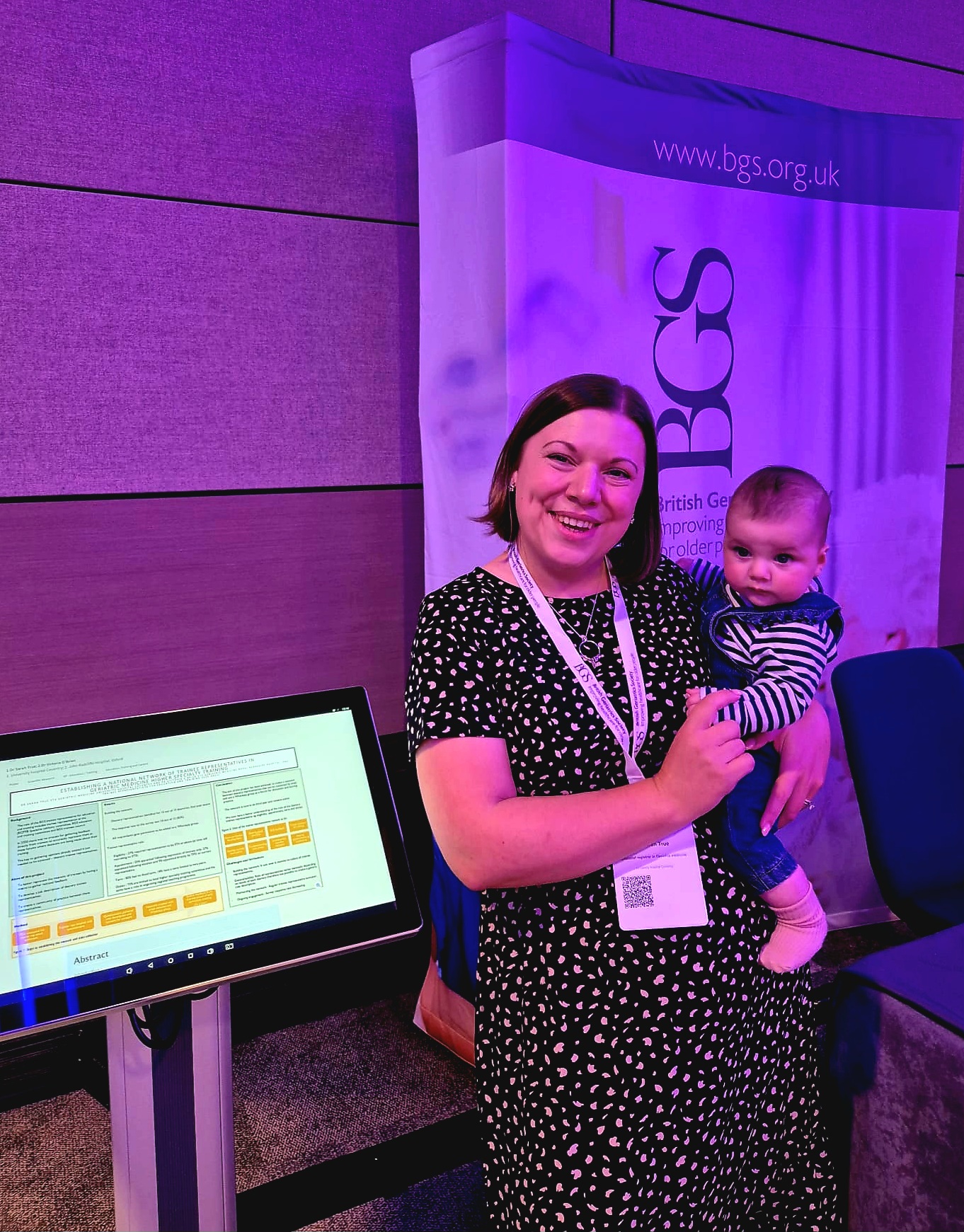 In the end, as with many things in geriatric medicine, we decided on a blended approach. On day one, my presentation slot was early morning, so I would feed my daughter at home, come along to the conference by myself and head back at the time she would be due her next feed. This worked well after discussing it with the conference team beforehand to ensure there would be a space available to me to ‘pump’ if required. So, I packed up my bag with a pump and a cool bag, found something presentable to wear and tried to dust off the part of my brain I would need for talking to grown-ups. The day went really well, and all my nerves soon faded away once I was in the room with my BGS colleagues, some of whom I was finally meeting in real life after working together for many years online. When I stood on the podium and started talking about the data I had so enjoyed working on what felt like a lifetime ago, I was quite surprised to hear my old self finding her way out from the new parent bubble.