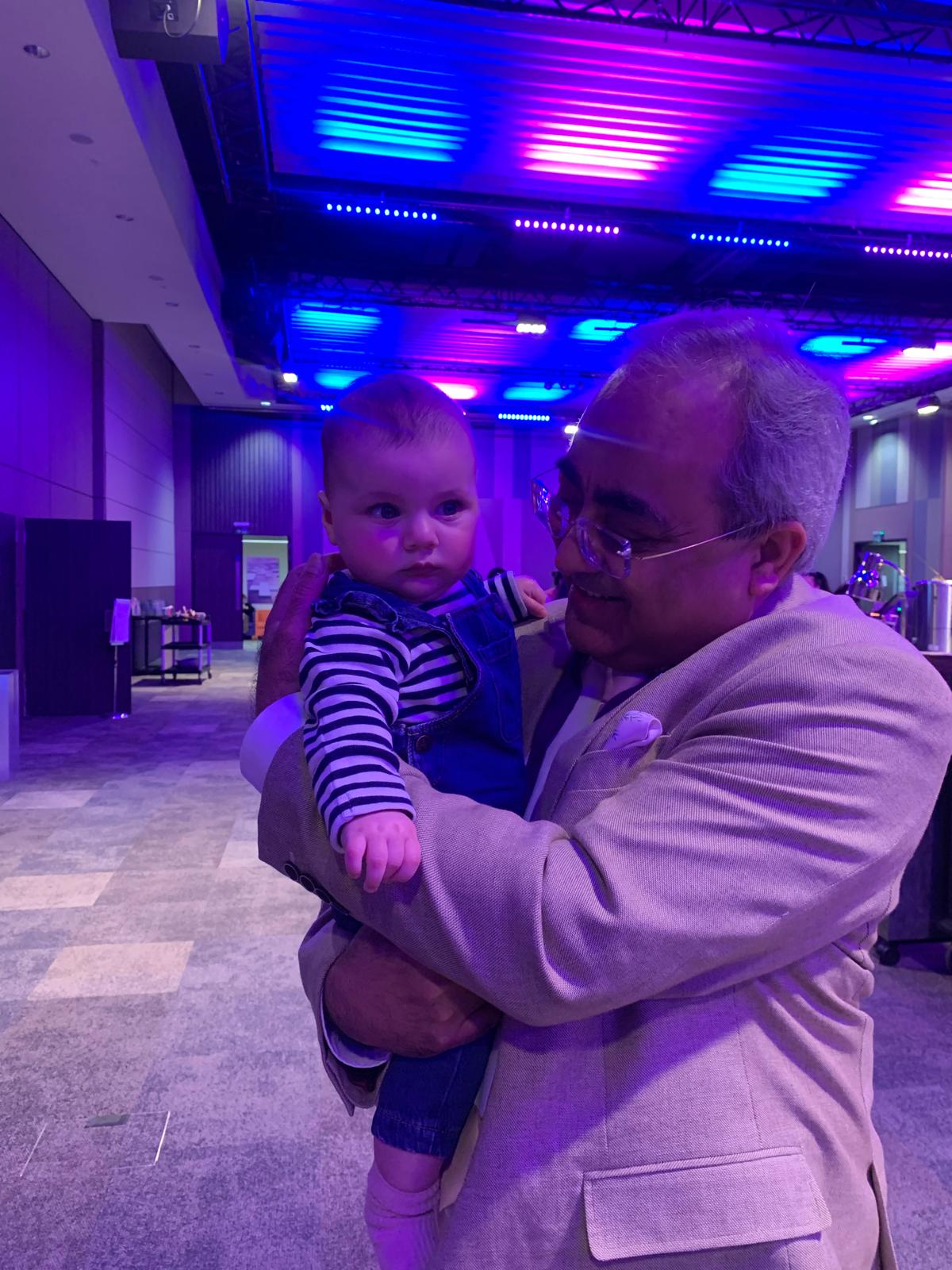 With day one done, we were on to the next challenge on day two – bringing baby with me! This actually needed less work than coming on my own, but it did help that I had familiarised myself with the venue the day before and there were learning points to bring forward to day two. Once again, I had been in contact with the conference team beforehand who were incredibly helpful and agreed to allow my (non-medical) husband access to the conference to bring baby in to me and also arranged an additional parking pass so that they could come and go, and I could stay to enjoy the conference a little longer. In reality, I actually saw very little of my baby during her visit. She spent most of her time being passed around and cooed over by my colleagues. It surprised me how touched I was to see her being held by some of the BGS colleagues who had supported me during my pregnancy and empowered me to continue engaging in this professional world when my home world had changed so much in the last few months. I even managed to capture a photo of Dr Arora, our now President Elect but who has also been my clinical supervisor and chair of the Workforce Committee, meeting my baby for the first time.