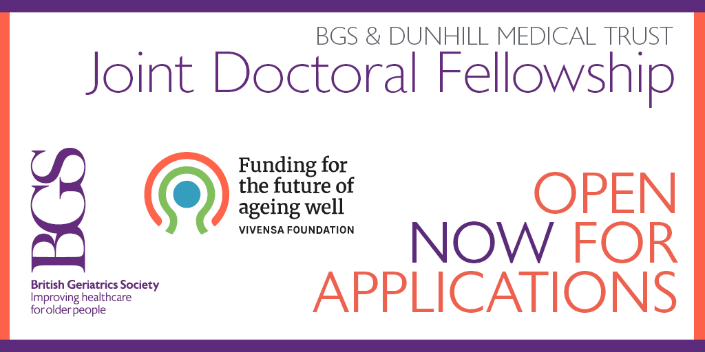 The British Geriatrics Society has partnered with the Vivensa Foundation, previously known as the Dunhill Medical Trust, to co-fund Doctoral Training Fellowships to support front-line health professionals undertake research relevant to age-related diseases and frailty.