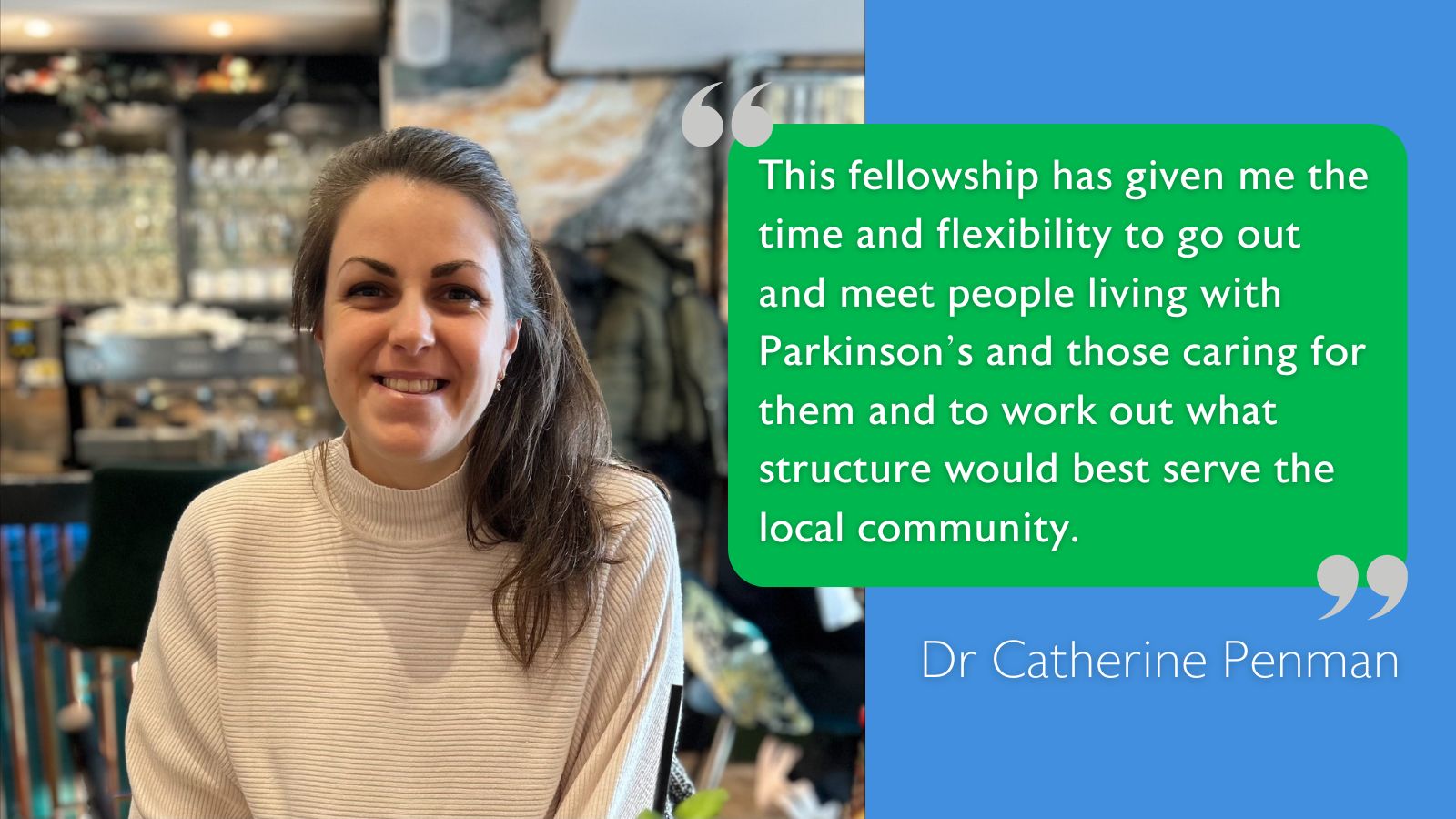 This fellowship has given me the time and flexibility to go out and meet people living with Parkinson’s and those caring for them and to work out what structure would best serve the local community. I am now in the process of using this feedback to collaborate with other local trusts and primary care teams to improve the care in our region.