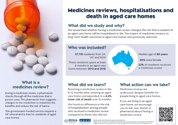There was no difference in the risk of hospitalisations for unplanned events or falls among residents with and without medicines reviews.