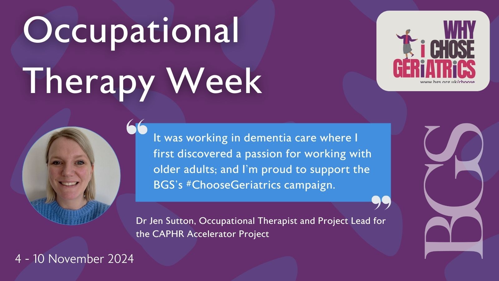 To mark Occupational Therapy Week, Jen reflects on why she chose a job working with older people to celebrate the BGS #ChooseGeriatrics campaign.