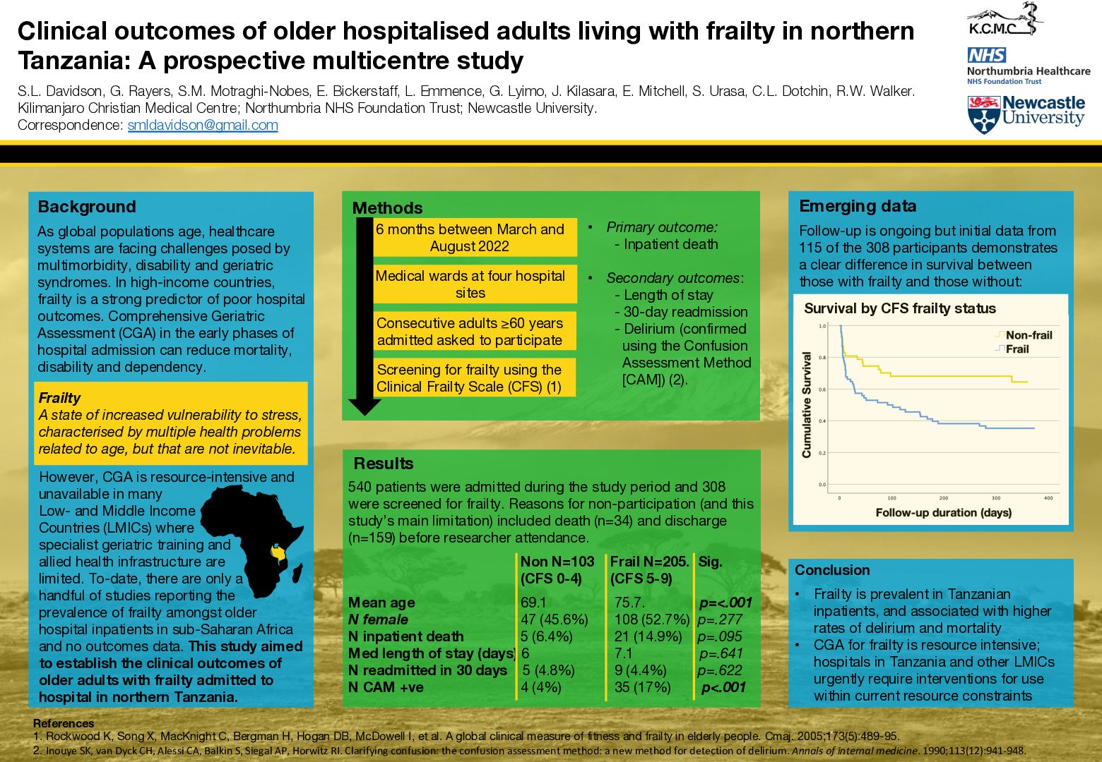 To establish clinical outcomes of older adults with frailty admitted to hospital in northern Tanzania.=