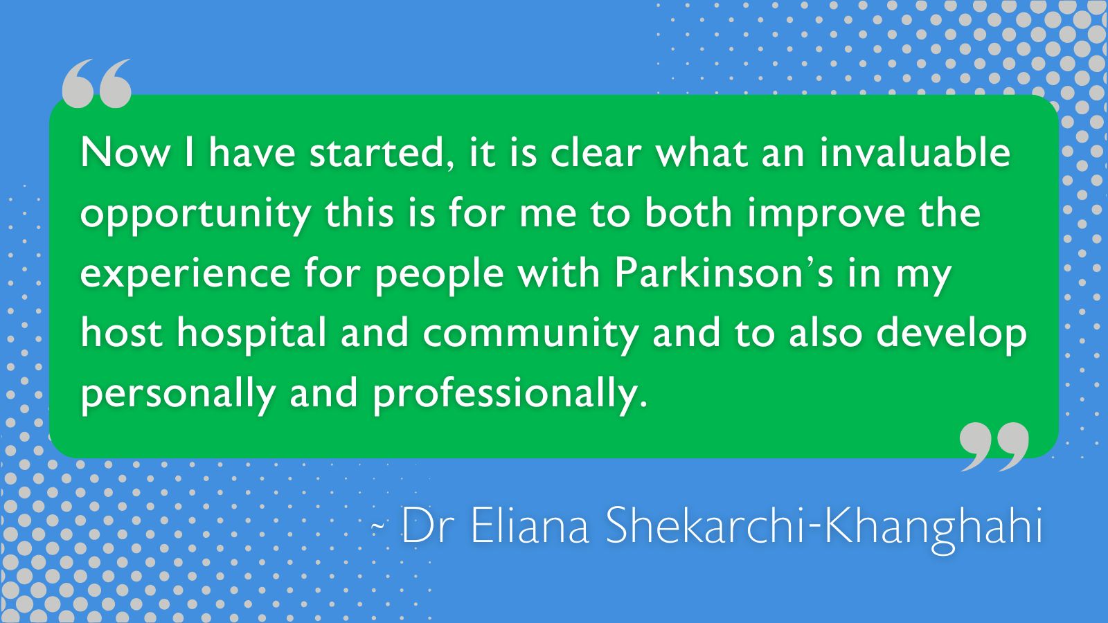 Thank you to Parkinson’s UK, BGS, the inspirational consultant I worked with and my host hospital for this opportunity - I am truly grateful.