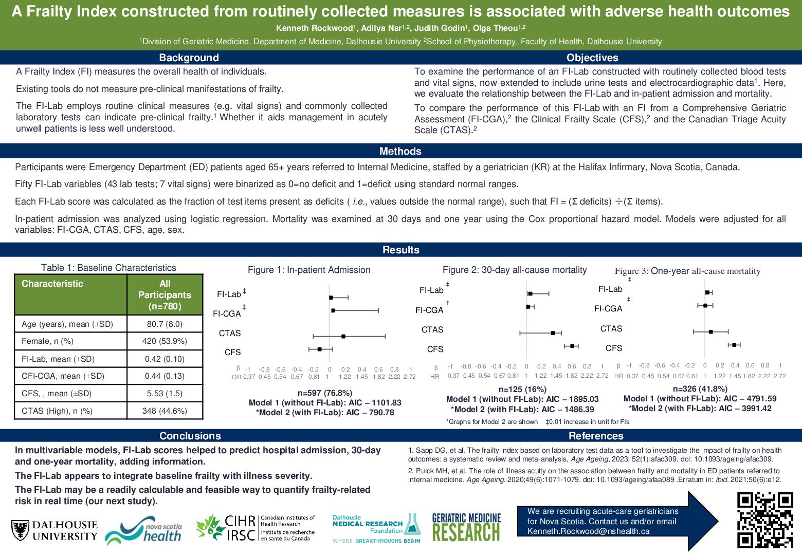 Kenneth Rockwood 1; Aditya Nar 1,2; Judith Godin 1; Olga Theou 1,2