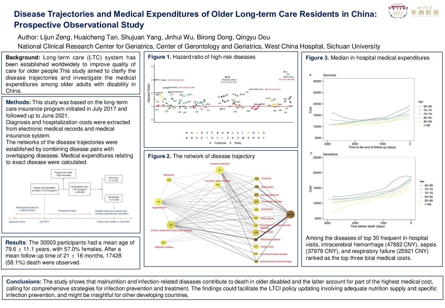 Conclusions: The study shows that malnutrition and infection-related diseases contribute to death in older disabled and the latter account for part of the highest medical cost, calling for comprehensive strategies for infection prevention and treatment.