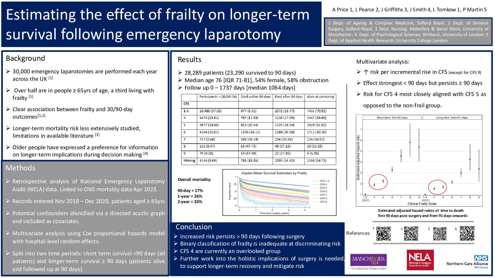 Great poster - really interested to hear about the inadequacy of binary classification as I am looking at how we can improve accuracy of frailty scoring on our emergency surgery wards. This cements in my mind that we need to ensure this is not 'dumbed down' for the sake of convenience (hope that makes sense!)
