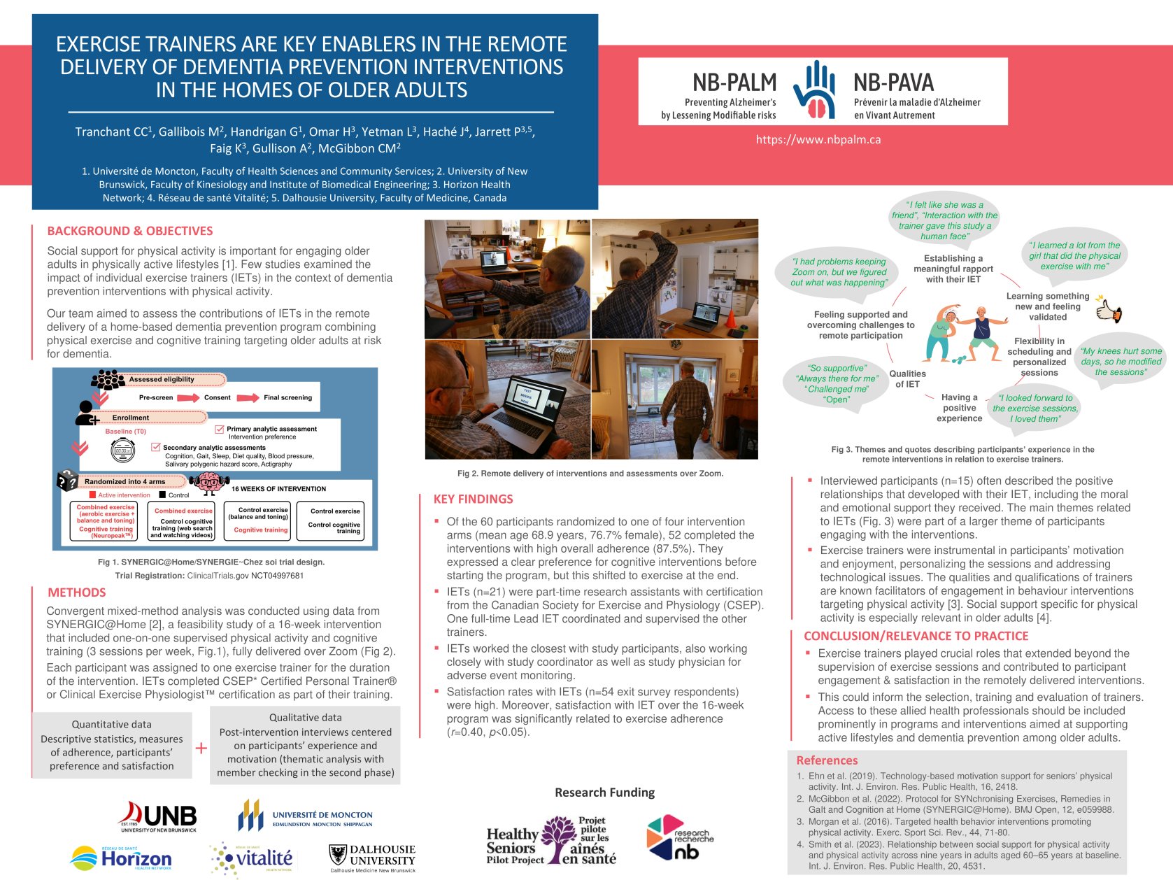 Introduction. Social support for physical activity is important for engaging older adults in physically active lifestyles. Few studies examined the impact of individual exercise trainers (IETs) in the context of dementia prevention interventions with physical activity. We aimed to assess the contributions of IETs in the remote delivery of a home-based dementia prevention program combining physical exercise and cognitive training targeting older adults at risk for dementia.