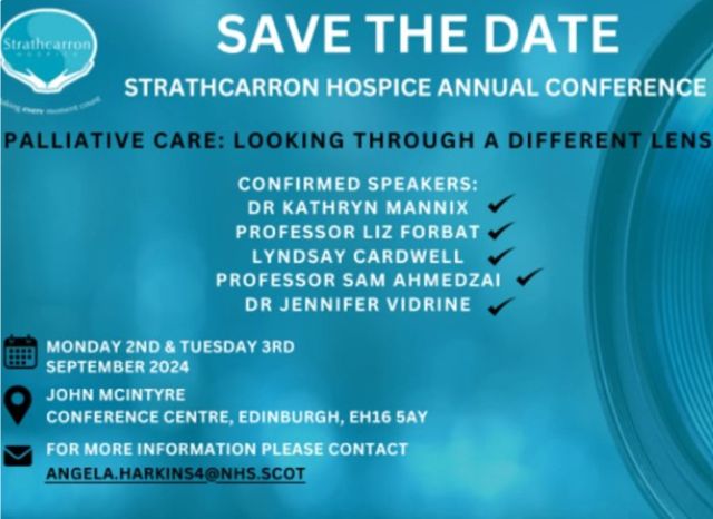 Strathcarron Hospice is delighted to be hosting our 12th Annual Conference in Edinburgh from 2nd – 3rd of September 2024 “Palliative Care: Looking through a different lens".