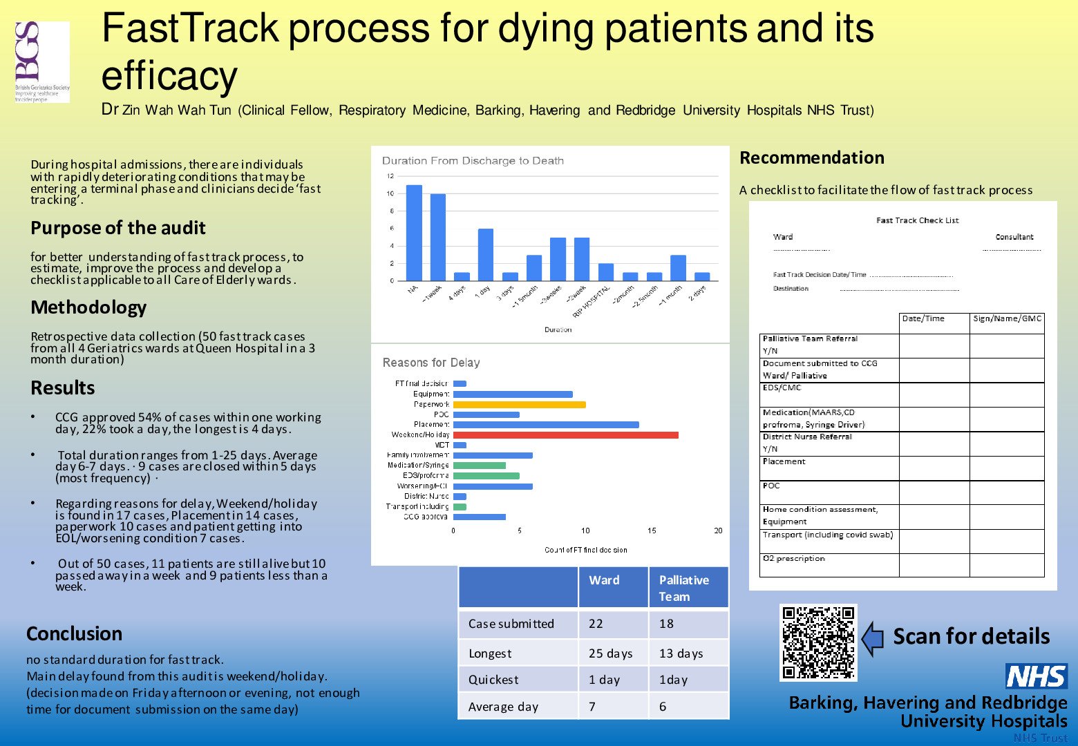 Retrospective data collection (50 fast track cases from all 4 Geriatrics wards at Queen Hospital in a 3 month duration)