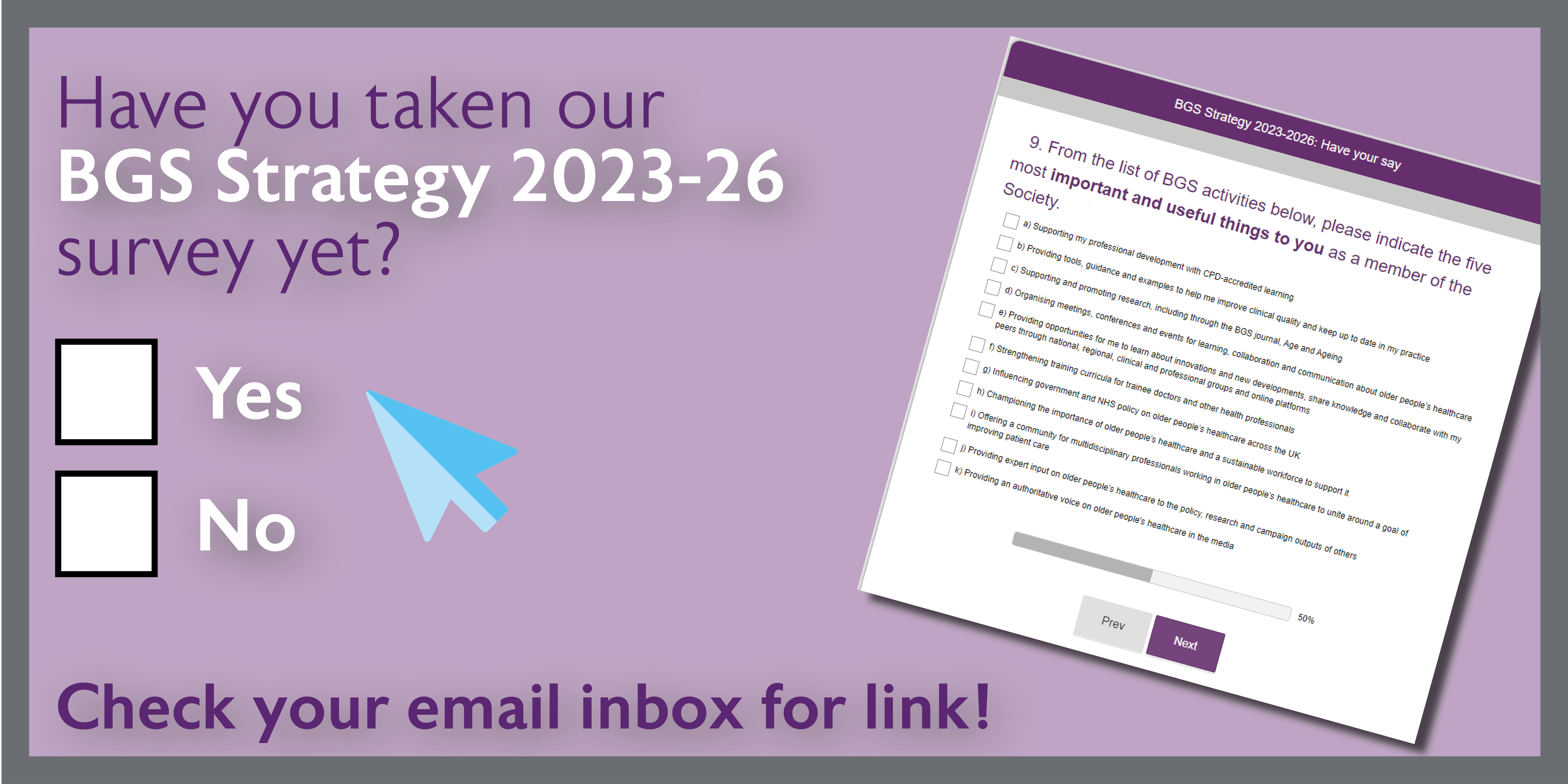 The BGS has embarked on a 10-month process to develop its next three-year Strategic Plan. This will guide the work of the BGS over the period April 2023 to March 2026. We want BGS members and anyone with an interest in older people’s healthcare to feed into the development of the new Strategic Plan. This will ensure it is rooted in the reality of delivering health and social care for older people across the UK and is informed by what you think the BGS’s priorities should be in improving the care older people receive.
