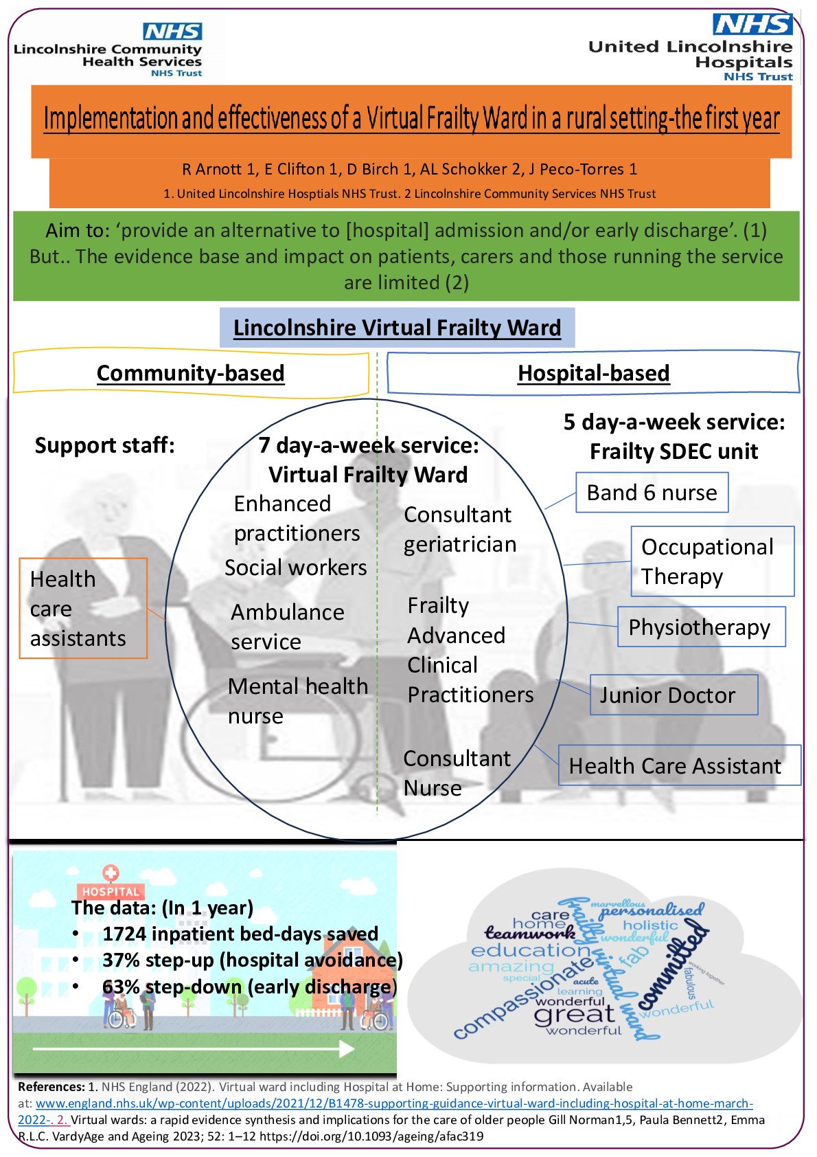 Discussion: Close collaboration across healthcare services and development of trust are key to success of a virtual frailty ward. Impact was clear over a 12 month period with 1724 acute bed days saved. Patient and carer satisfaction was high. MDT attendance remained consistent, with positive feedback from across sectors of the hidden value of the shared learning and education. Actual savings in relation to wider effects are outside of this scope of this study e.g. deconditioning, mortality, but positive outcomes from CGA have been widely published. Further work is required to become more proactive in hospital avoidance and increasing numbers of step up patients.
