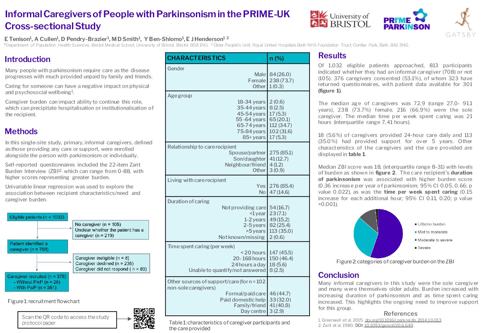 Many informal caregivers in this study were the sole caregiver and many were themselves older adults. Burden increased with increasing duration of parkinsonism and as time spent caring increased. This highlights the ongoing need to improve support for this group.