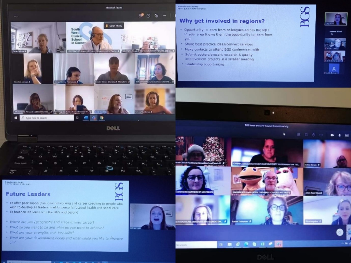 As the pandemic continued, it was apparent to us that there was a growing need to reach out further, to connect with our wider Council and offer peer support opportunities to those who worked outside strong networks supporting caring for older people. At the BGS Autumn Meeting in November 2020 we held a networking lunchtime event. We were surprised by the quietness of our nursing and AHPs’ voice. We felt we had so much to say, to share and to celebrate connected to the pivotal role our professions have continued to play during the subsequent waves of COVID-19. It was clear we needed to do more. By January 2021 we hatched a plan to introduce three Communities of Practice (CoPs) to serve our membership – Future Leaders, Advanced Practice and Research/Clinical Academics. We approached inspirational leaders, academics, and clinicians to facilitate the CoPs. We held an energising evening webinar in February to launch them and to promote and encourage more NAHPs to become involved in their BGS regional work, submitting posters, presenting their quality improvement and research projects, and stepping up into leadership roles. We will use the CoPs to support this and will measure the outputs.