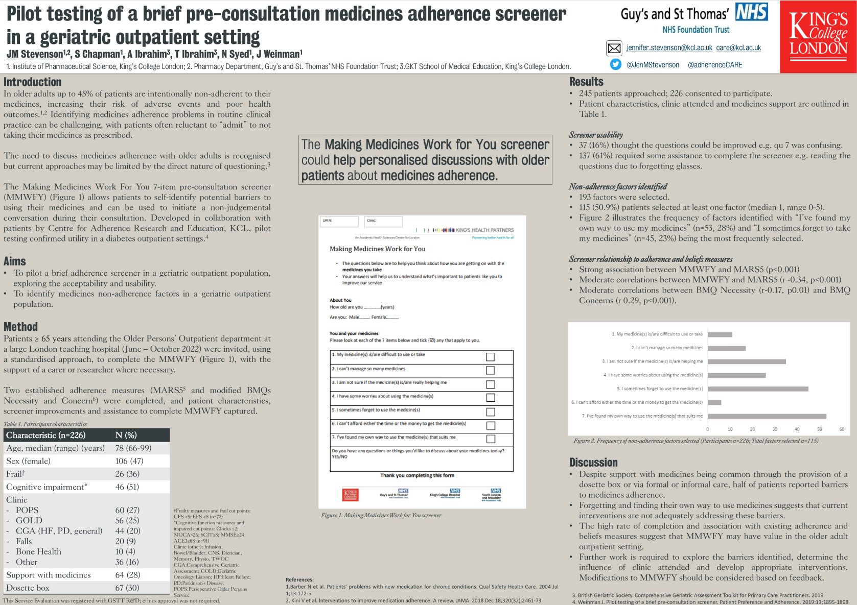 1. Institute of Pharmaceutical Science, King’s College London 2. Pharmacy Department, Guy’s and St. Thomas’ NHS Foundation Trust 3.GKT School of Medical Education, King’s College London