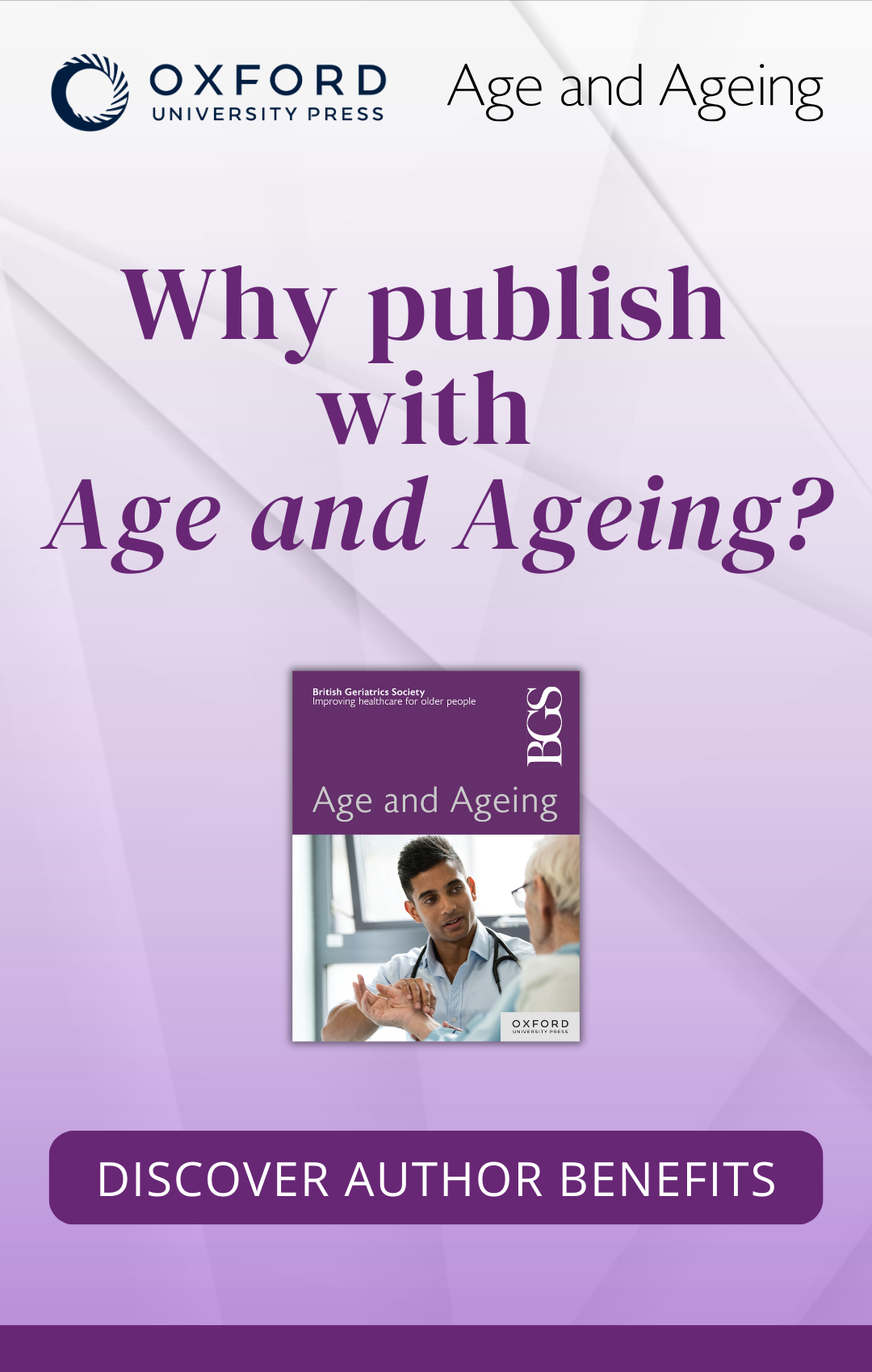 To find out more about how Age and Ageing raises the profile of research into older people’s health and to submit your work to the journal, visit our 'Reasons to Publish' page.