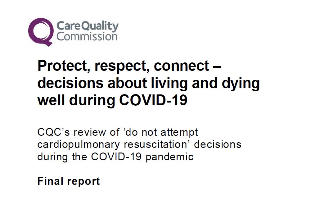 Today the Care Quality Commission published its report: Protect, respect, connect – decisions about living and dying well during COVID-19. The CQC had looked at practice around advance care planning during the COVID pandemic and focused particularly on the issue of DNACPR (Do Not Attempt Cardiopulmonary Resuscitation) orders.
