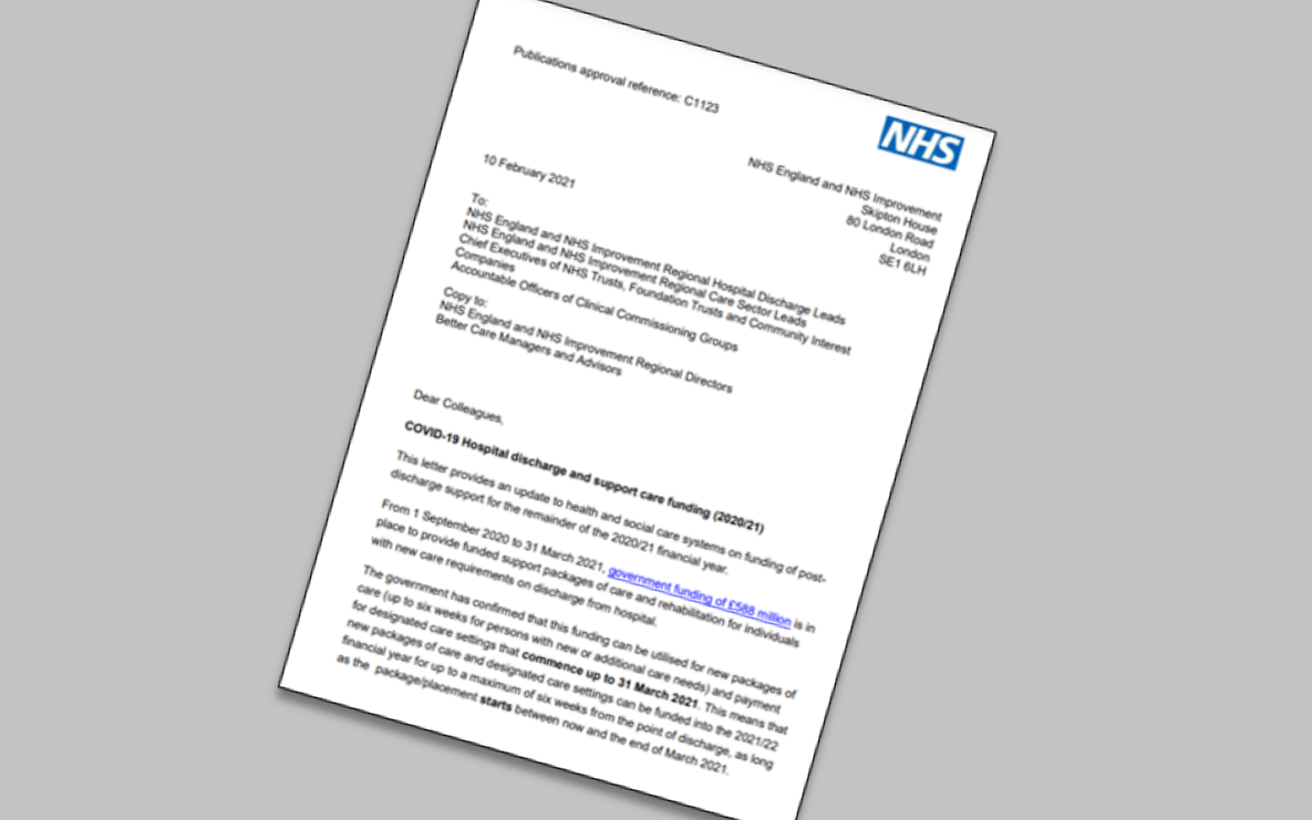 The British Geriatrics Society welcomed the announcement in August last year of new funding of £588million to support the health and social care needs of people being discharged from hospital for up to six weeks. When it was announced that this funding would last only up until 31 March 2021, 19 of our senior officers and members wrote to the Chancellor urging him to make this funding recurrent.