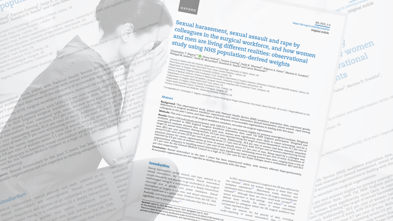 “While there is much to be celebrated about the health and care workforce, it is important to take a moment to reflect on the challenges many of us face in our day jobs. We were horrified to read the recently published article on sexual harassment, sexual assault and rape by colleagues in the surgical workforce. It concluded that sexual misconduct in the past five years has been experienced widely and is not dealt with adequately by accountable organisations. This follows the British Medical Association (BMA) survey last year on sexism in medicine, where 91% of women reported experiencing sexism at work within the past two years.