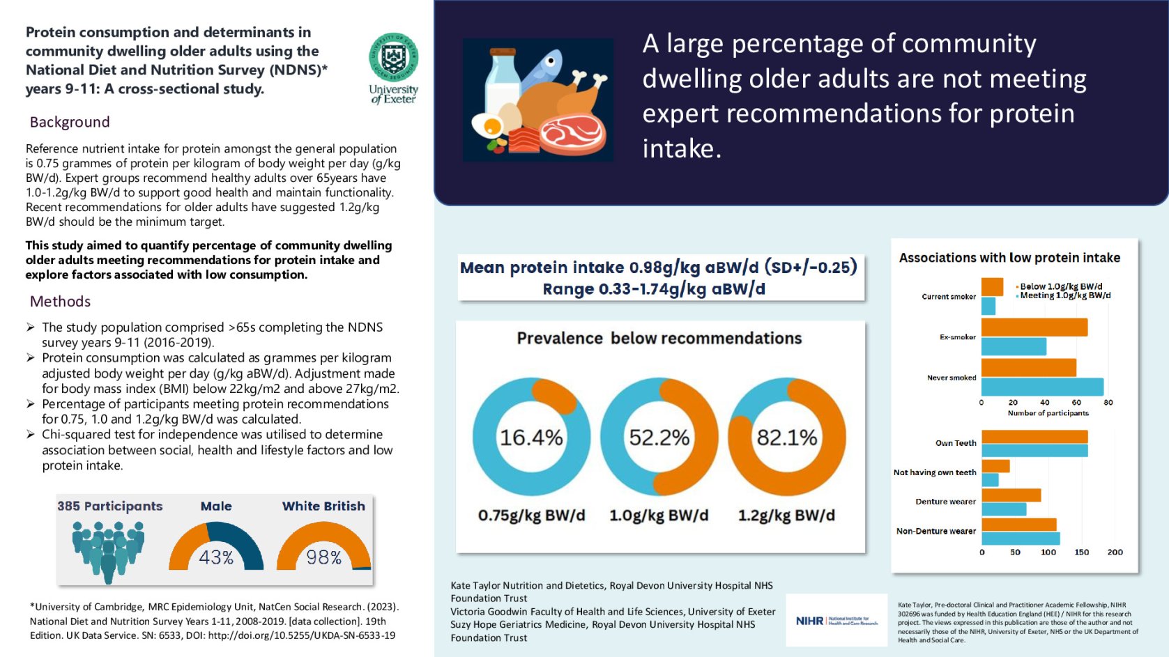 Abstract ID 2027 Protein consumption and determinants in community dwelling older adults using the National Diet and Nutrition Survey (NDNS) years 9-11: A cross-sectional study.