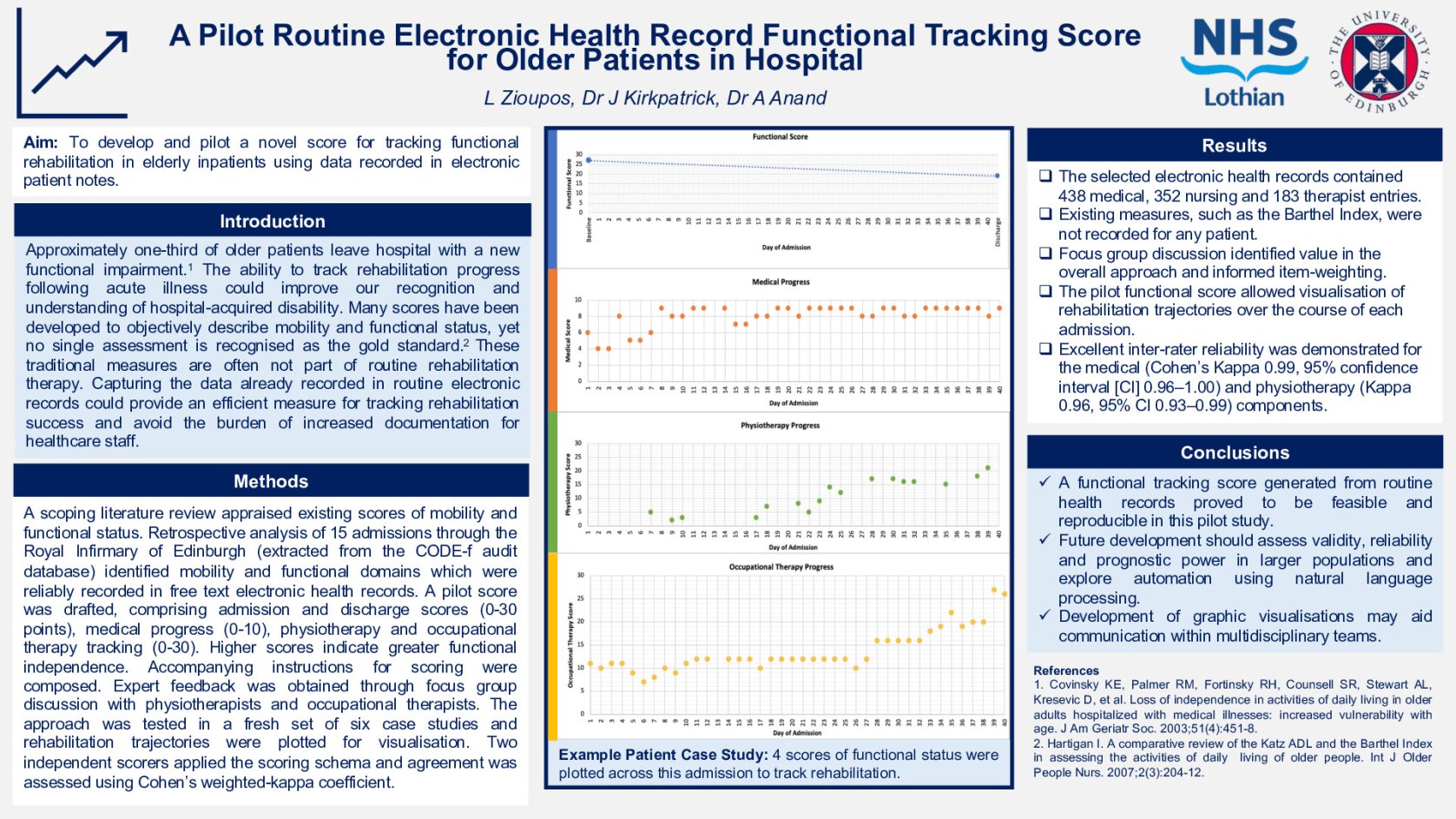 Abstract ID 1272 A Pilot Routine Electronic Health Record Functional Tracking Score for Older Patients in Hospital