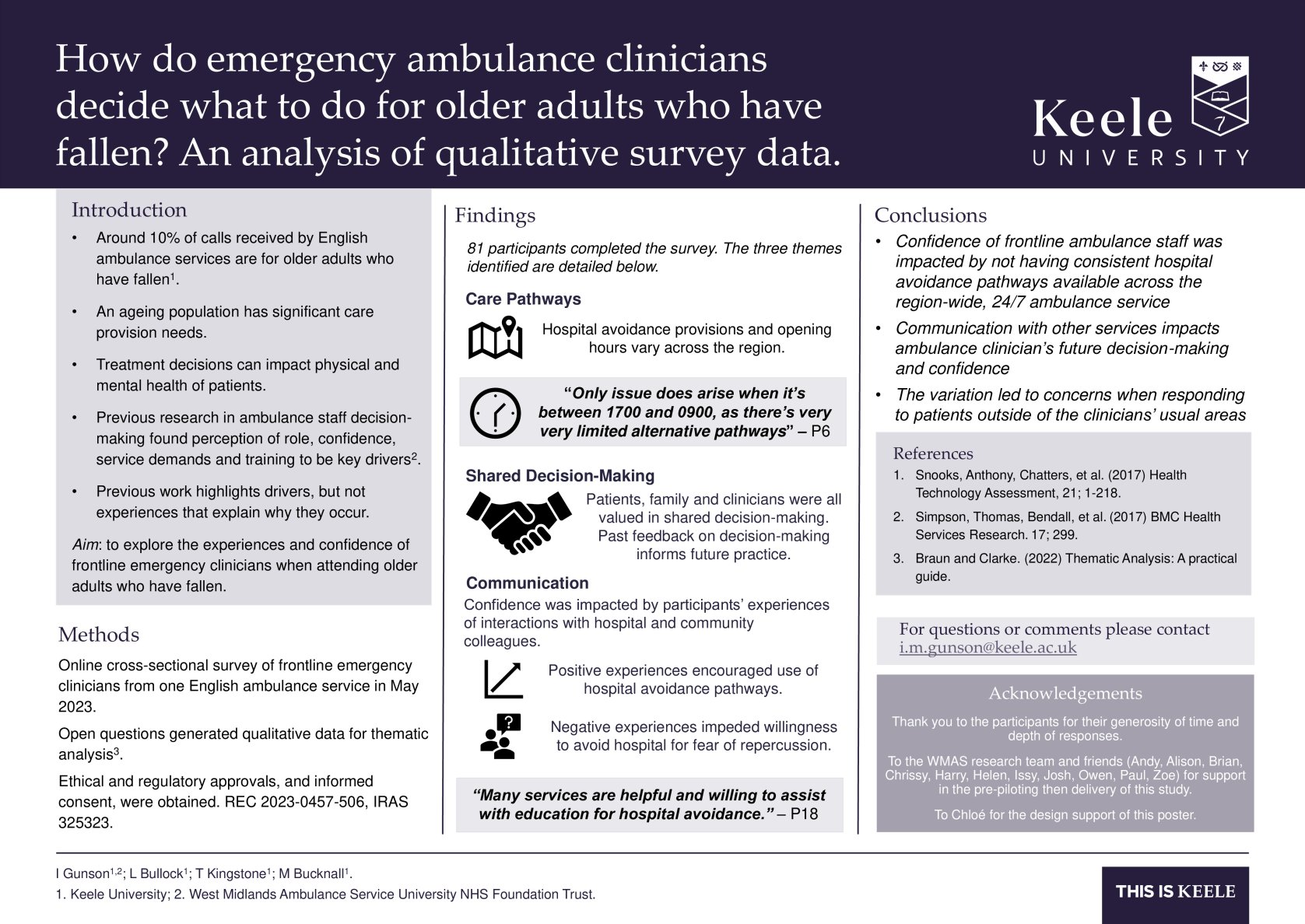 Abstract ID 1785 How do Ambulance Service staff decide what to do for older adults who have fallen? An analysis of qualitative survey data.
