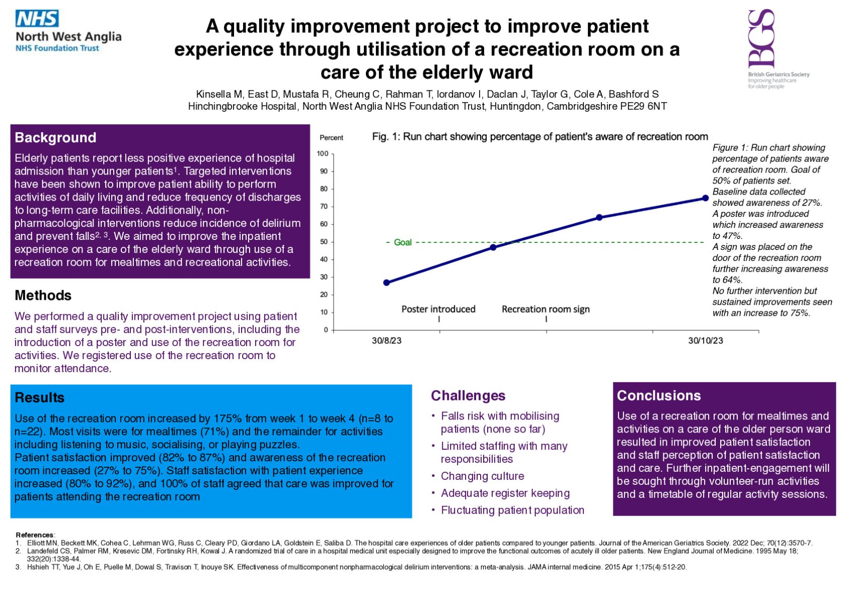 Abstract ID 2120 A quality improvement project to improve patient experience through utilisation of a recreation room on a care of the elderly ward