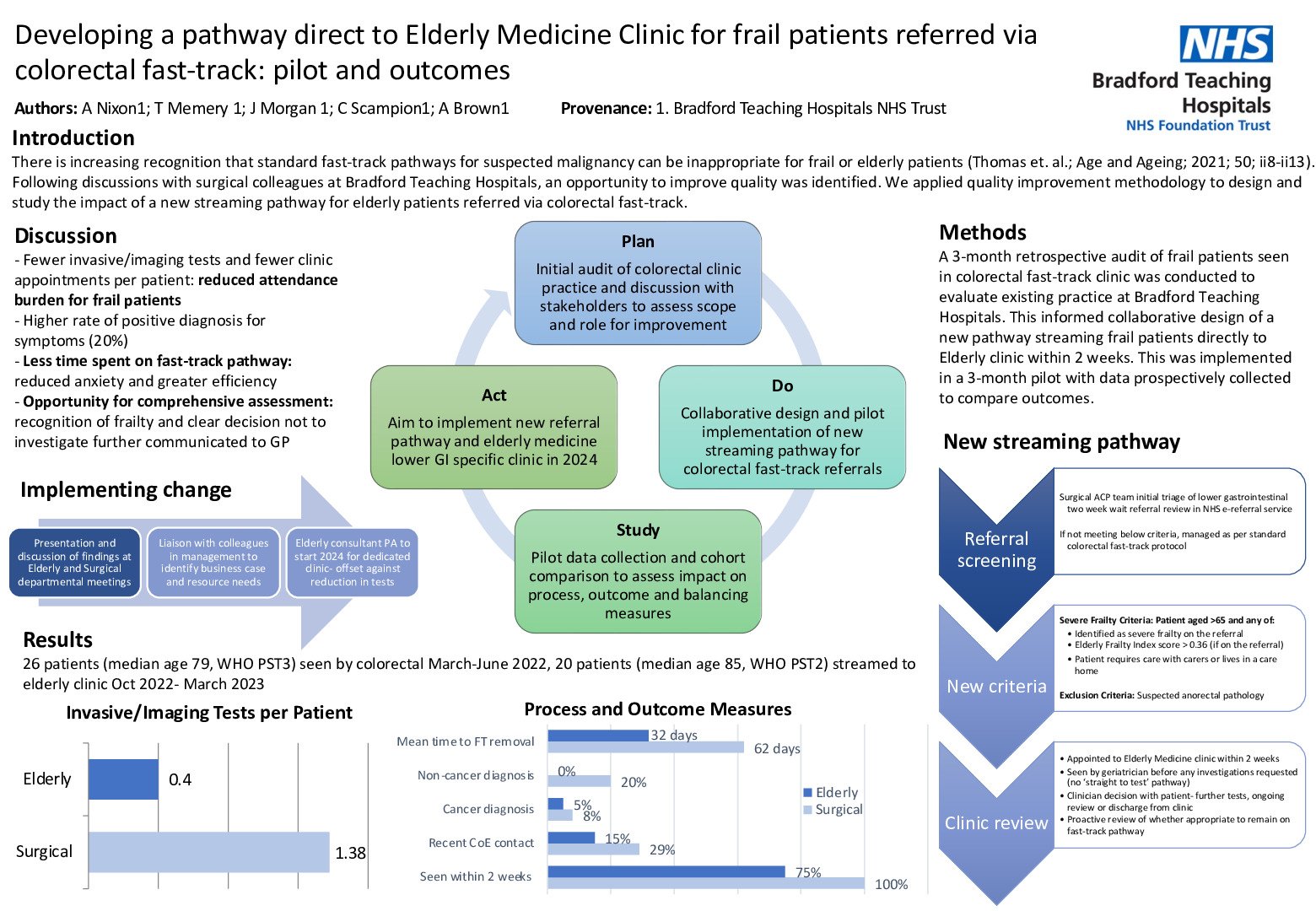 Abstract ID 1874 Developing a pathway direct to elderly medicine clinic for frail patients referred via colorectal fast-track: pilot and outcomes