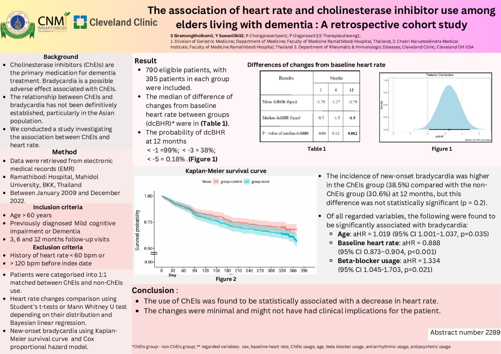 Abstract ID 2289 The association of heart rate and cholinesterase inhibitor use among elders living with dementia: A retrospective cohort study