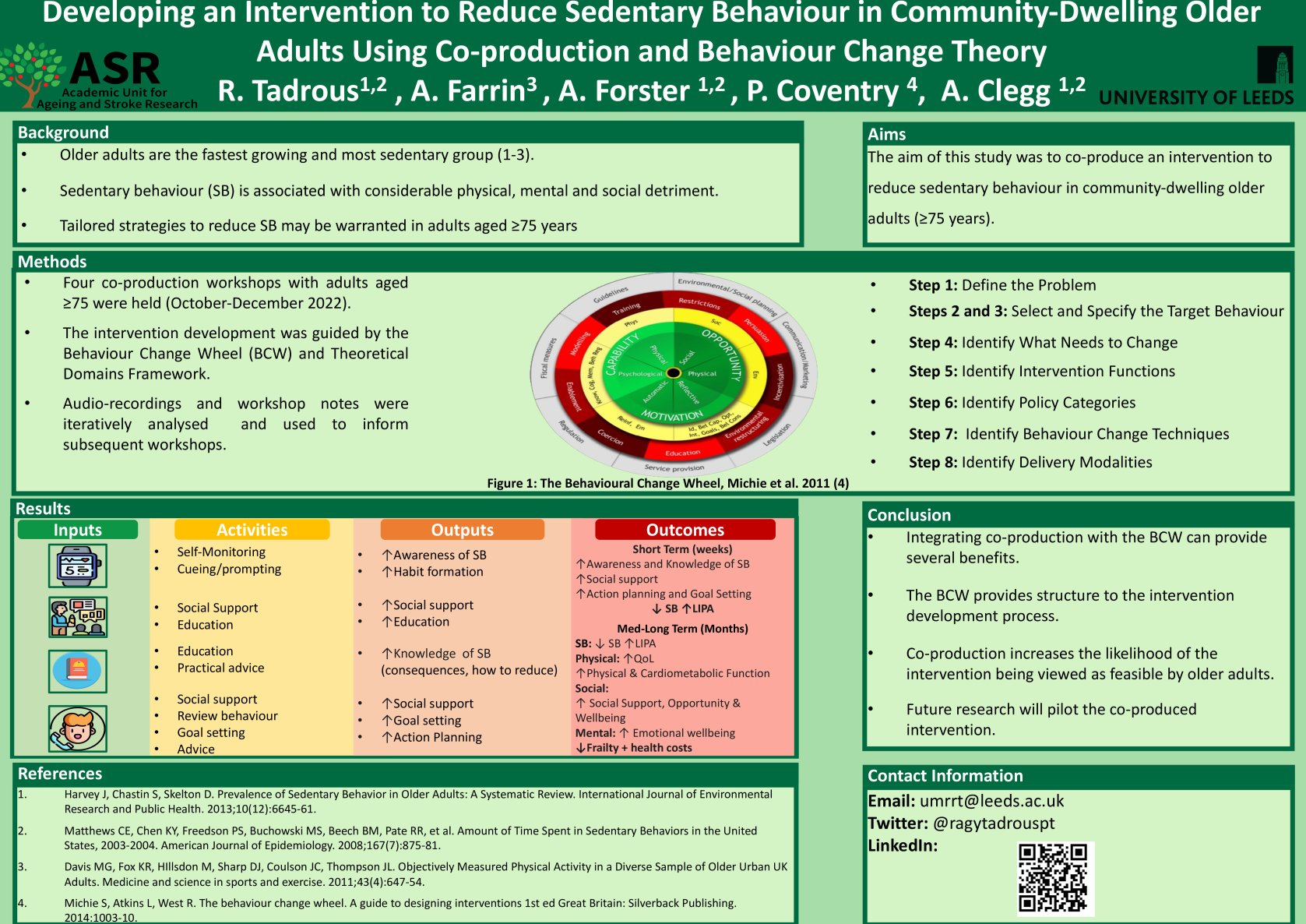 Abstract ID 1718 Co-Producing an Intervention to Reduce Sedentary Behaviour in Community-Dwelling Older Adults Through Behaviour Change Theory