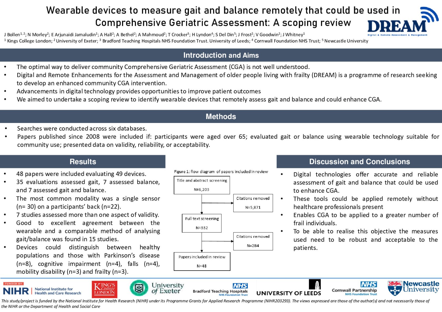 Abstract ID 1964 Wearable devices to measure gait and balance remotely that could be used in Comprehensive Geriatric Assessment: A scoping review