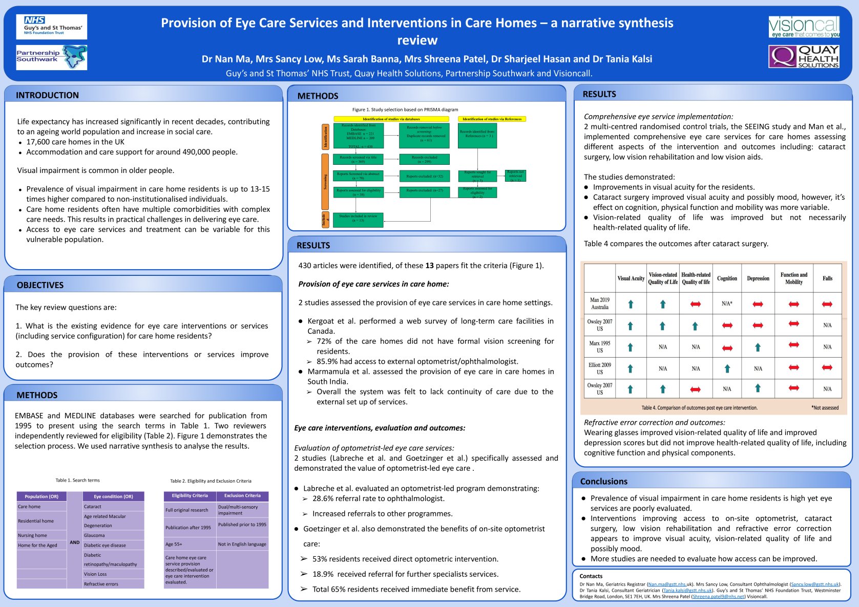 Abstract ID 1210 Provision of Eye Care Services and Interventions in Care Homes – a narrative synthesis review