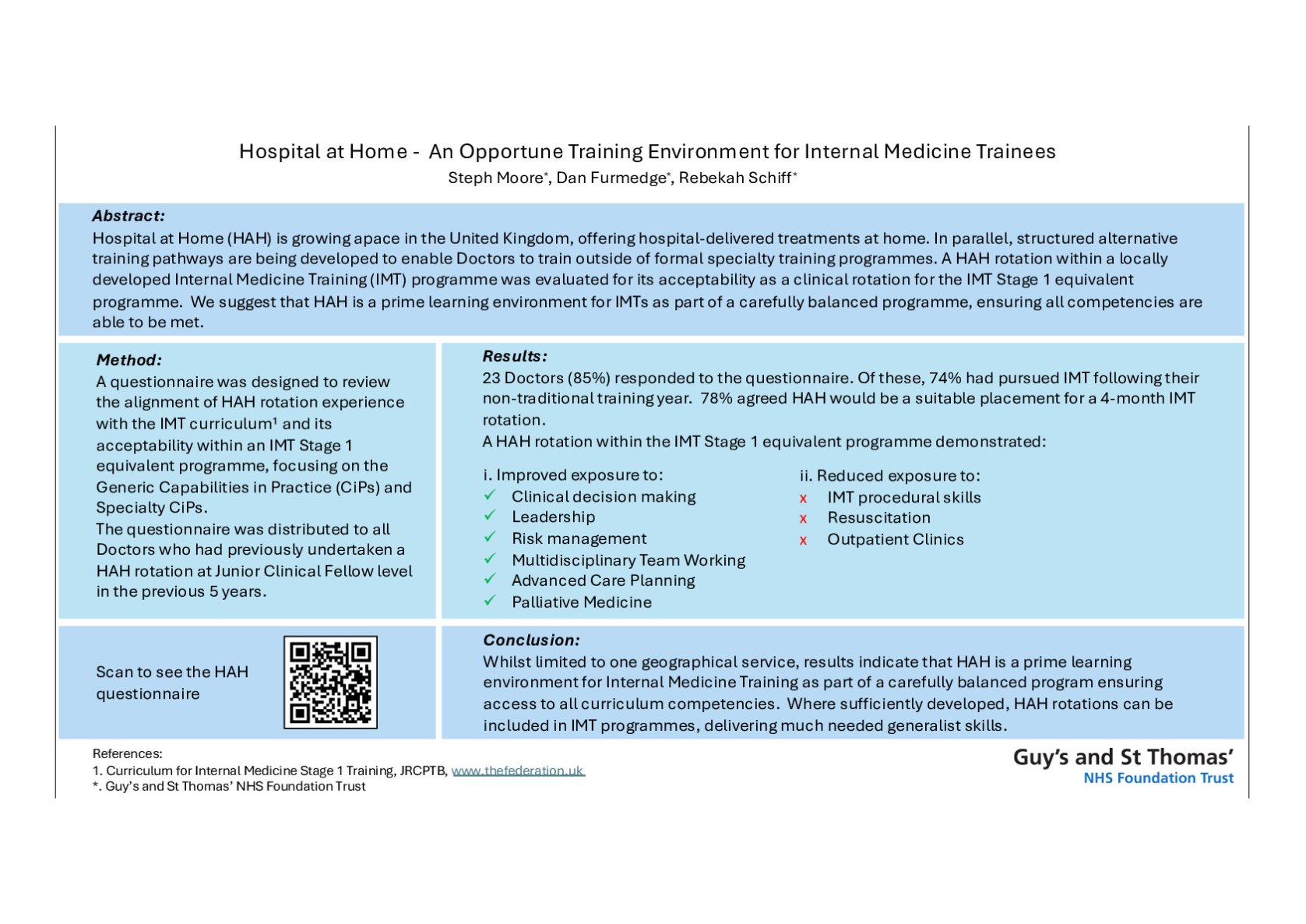 Abstract ID 1846 A Bespoke Teaching Programme Improves Staff Confidence in the Clinical Management of Hospital at Home Presentations