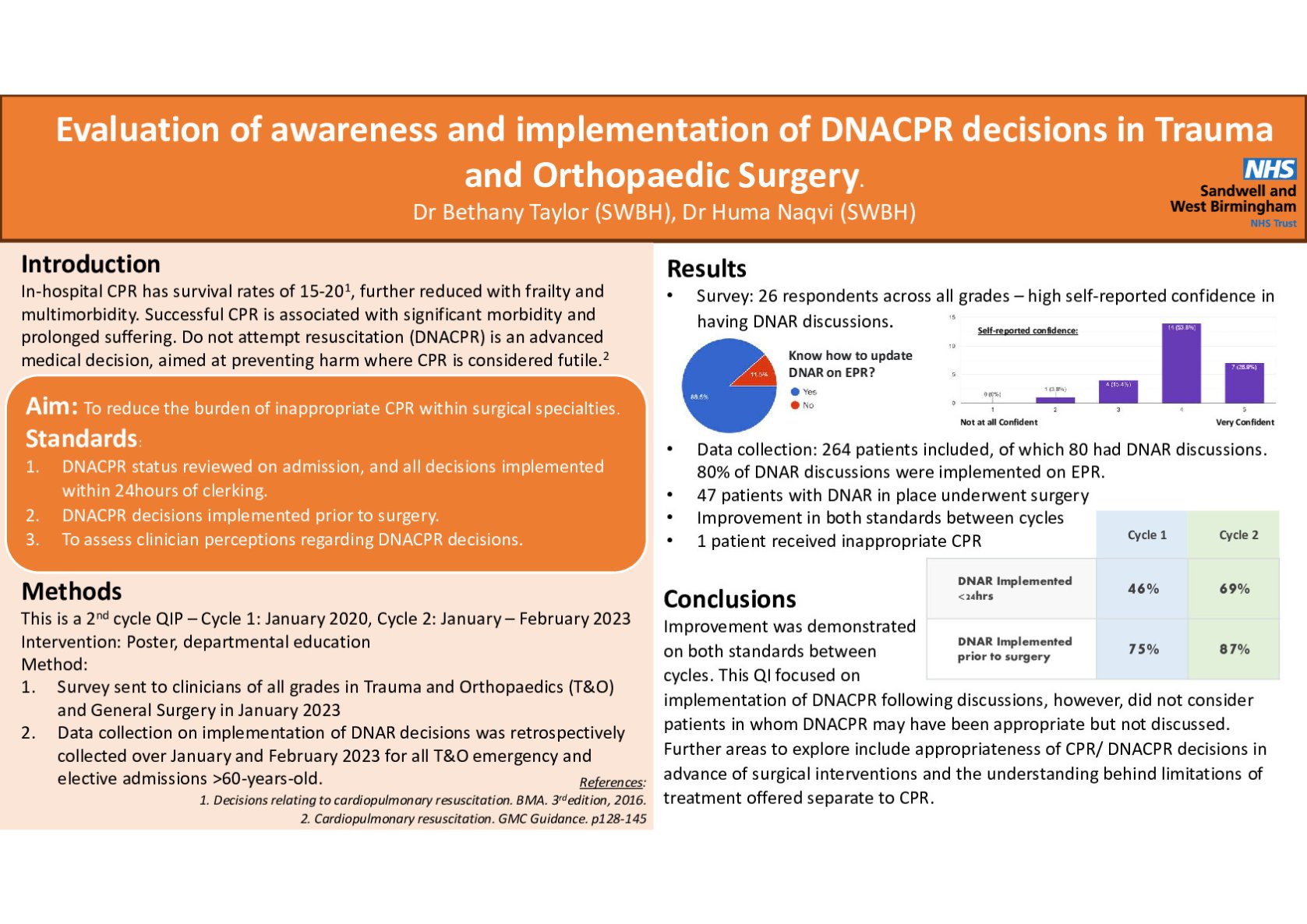 Abstract ID 2136 Evaluation of Awareness and Implementation of DNACPR Decisions in Trauma and Orthopaedic Surgery