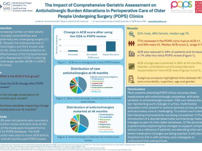 This service evaluation reviewed the impact of the Perioperative Care of Older People Clinic (POPS) on Anticholinergic Burden (ACB) in older surgical patients and identified areas for improvement. The study assessed 75 patients aged ≥65 years, revealing widespread anticholinergic use. Among patients on anticholinergics, 34% experienced a reduction in ACB post-POPS review. However, maintaining these changes at ≥6 months was challenging, with 50% of patients experiencing a change in their ACB score due to new prescriptions or the re-initiation of old medications. The study identified
