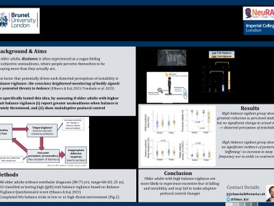 Introduction. In older adults, dizziness is often experienced as a vague feeling of subjective unsteadiness, where people perceive themselves to be swaying more than they actually are. One factor that potentially drives such distorted perceptions of instability is (hyper)vigilance towards balance. This study aimed to investigate if older adults who report higher levels of trait balance vigilance (i) are more likely to report sensations of general unsteadiness when their balance is acutely threatened, and (ii) if this is accompanied by maladaptive changes in postural control. Methods. Forty