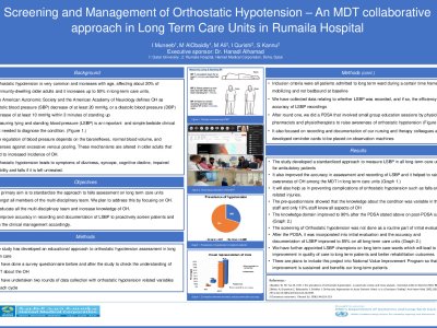 Introduction: Orthostatic hypotension is very common and increases with age, affecting about 20% of community-dwelling older adults and it increases up to 50% in long-term care units. Measuring lying and standing blood pressure (LSBP) is an important and simple bedside clinical test needed to diagnose the condition. The regulation of blood pressure depends on the baroreflexes, normal blood volume, and defenses against excessive venous pooling. These mechanisms are altered in older adults that lead to increased incidence of OH. Orthostatic hypotension leads to symptoms of dizziness, syncope