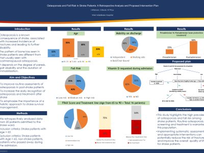 Introduction: Osteoporosis is a known consequence of stroke, associated with an increased incidence of fractures and leading to further disability. The pattern of bone loss seen in stroke patients is different from that usually seen with postmenopausal osteoporosis. It depends on the degree of paresis, gait disability, and the duration of immobilisation. Methods: We retrospectively analyzed data from 20 patients admitted to the stroke ward. All patients with stroke aged more than 65 years were included in the data. Patients who were less than 65 years old, non-stroke patients, and patients who