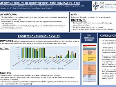 Introduction A good discharge summary for a patient is an important clinical record that narrates and communicates clinical information about the patient's entire hospitalisation. Discharge communications between healthcare facilities play a pivotal role in the coordination of patient care. As geriatric patients’ physical health is intricately woven into their social circumstances, mobility, and available care facilities, the mention of these parameters becomes quite important as it informs the community medical team of the patient’s condition more comprehensively. Crafting a good summary is