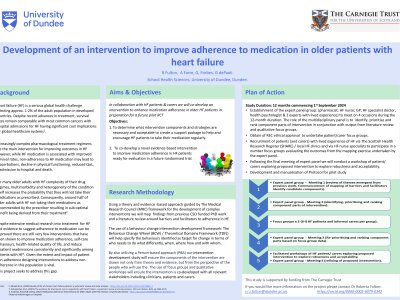 Background: Heart Failure (HF) is a major cause of poor health, hospitalisation, and death, particularly amongst older people. Routinely prescribed HF medication can improve these outcomes, but many patients do not take their medications. Aims: To develop a tailored multi-component intervention to enhance medication adherence in older HF patients in preparation for a future pilot RCT. Objectives: To determine what intervention components and strategies are necessary and acceptable to create a support package to help and encourage HF patients to take their medication regularly. To develop an