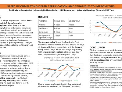INTRODUCTION Death certification is a legal requirement. By law, deaths must be registered within 5 days of receipt of the MCCD by the registrar unless there is to be a coroner’s investigation. Prompt and accurate completion is essential because it enables the death to be registered and provides a permanent legal record of the fact and cause of death. It allows the family to make funeral arrangements and to begin the process of settling the deceased person’s estates. Delays in producing death certificates can cause significant distress to grieving families . This QIP looked at a ward’s speed