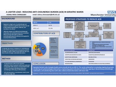 A lighter load: Tackling ACB (Anticholinergic burden) in geriatric wards: Background: Exposure to high levels of anticholinergic and sedative medications significantly increases the risk of fall-related hospitalizations, delirium, and mortality in the elderly. While the dangers of traditional anticholinergic medications are well-documented, the cumulative effects of drugs with mild to moderate anticholinergic properties often go unrecognized in everyday clinical practice. Objectives: To identify the primary contributors to anticholinergic burden (ACB) in geriatric wards and propose practical