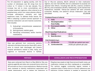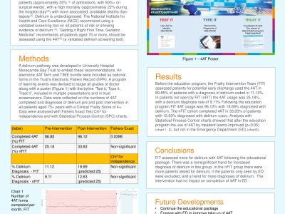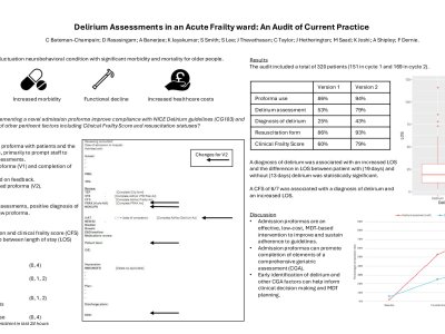 Background Postural hypotension, defined as a systolic blood pressure drop of ≥20 mmHg or diastolic drop of ≥10 mmHg within 3 minutes of standing, is common in older hospitalised patients and is a major risk factor for falls, injury and mortality. Management is often complicated by coexisting supine hypertension, for which national guidance is limited. An internal audit (n=28) highlighted low resident doctor confidence in managing these conditions. Our aim was to improve clinician knowledge and confidence through the introduction of a clear guideline and educational materials. Methods A Plan