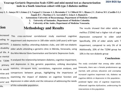 Introduction: T2DM prevalence increased in the elderly, leading to cognitive impairment, depression and disability impacting quality of life. A study evaluated the mental health of geriatric T2DM patients receiving primary care in Merida. This would guide timely preventive and therapeutic interventions to enhance these patients' and families' quality of life.T2DM prevalence increased in the elderly, leading to cognitive impairment, depression and disability impacting quality of life. A study evaluated the mental health of geriatric T2DM patients receiving primary care in Merida. This would